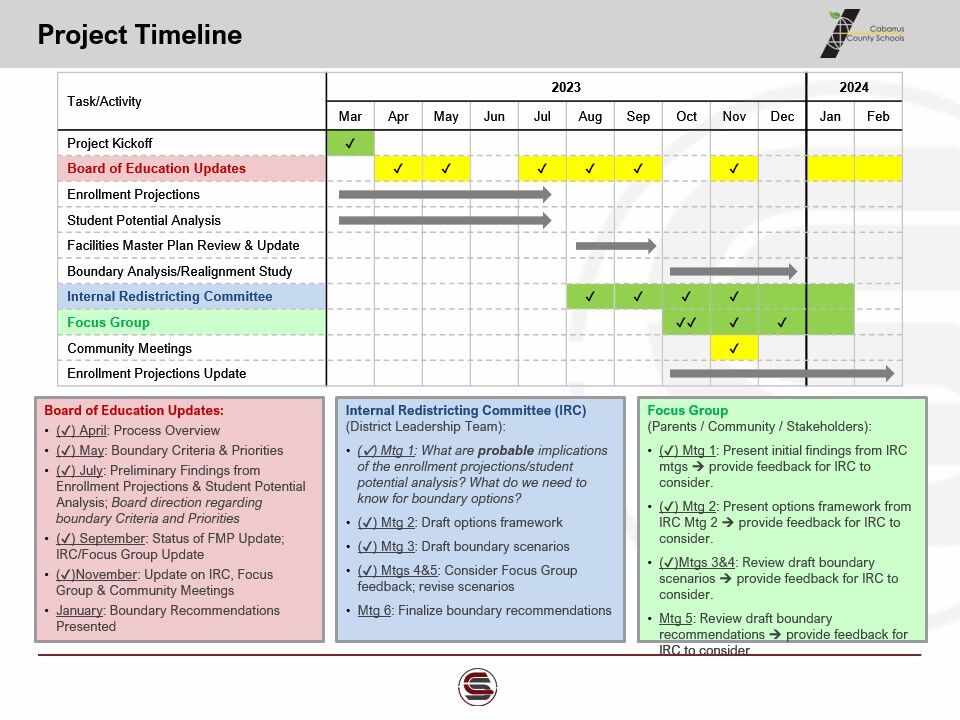 ✳️Conceptual Scenarios A, B, and C remain available for public input and feedback. The feedback survey is open until Dec. 15. Please visit our realignment website at https://engagewithccs.com/district-re-alignment for other information surrounding realignment and the ten-year facilities master plan. The Spanish-language feedback survey may be accessed here: https://www.surveymonkey.com/r/ccsespanol. No redistricting decisions have been made by the Board of Education at this time. Per the current project timeline, a vote on any necessary boundary adjustments for the 2024-25 school year is scheduled to occur in February, 2024.